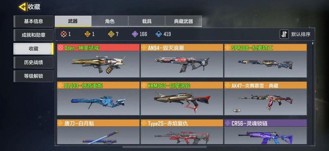 槍械皮膚:機要特工 262渦輪增壓 q33低音 oden神圣懲戒 唐刀 ak典藏