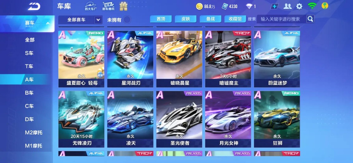 描述:秩序機甲4皮膚冰魄4皮膚時序狼隊A車多多時裝寵物多多技術不行退游了