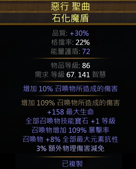 畢業召喚盾精髓生命+1召喚技能召喚生命三破裂+T2召喚傷.召喚暴率 幽魂骷髏聖物