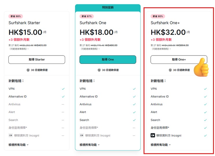 本店只需60 HKD,即可享用Surfshark VPN One+方案