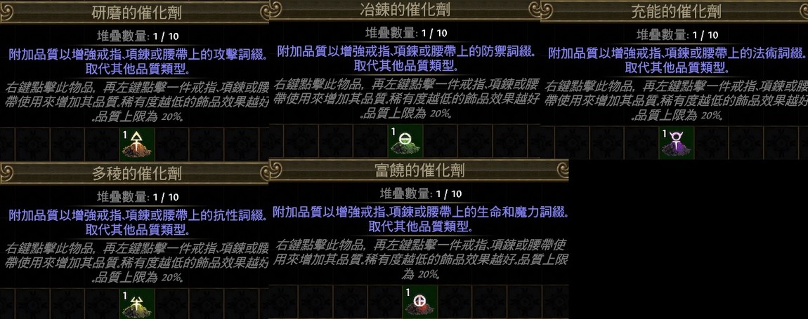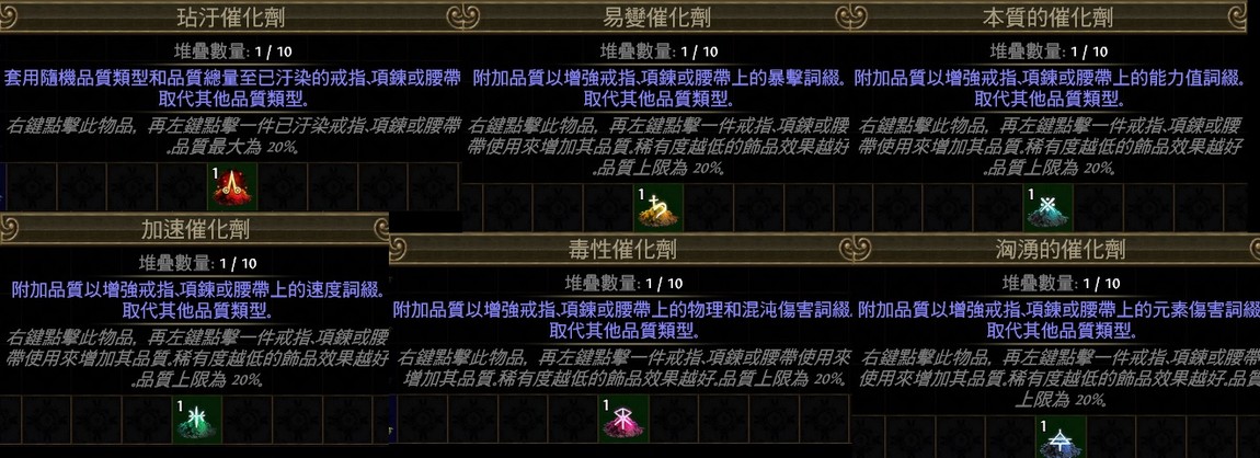 PoE催化👌玷汙催化劑 (品質類型和品質總量至已汙染的戒指項鍊或腰帶 )催化劑
