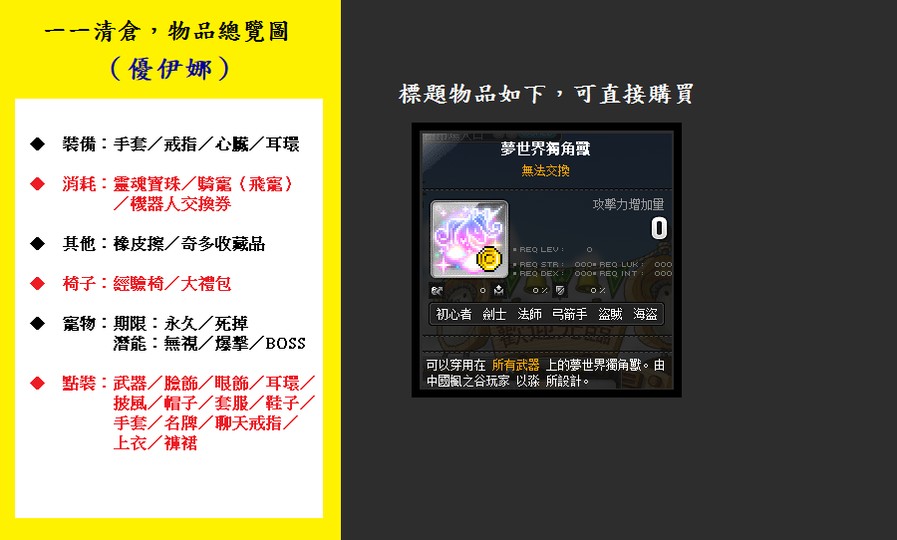 此單為 █ 夢世界獨角獸(點武)(含剪) █ 或單內等值物品