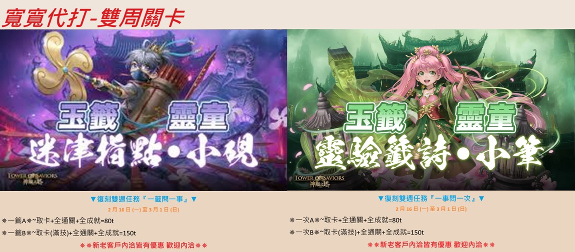 🆙️寬寬代打🆙️台服🔥手動代打✅️全場最低價7折起🌠五萬保證金💰立即開打不用等