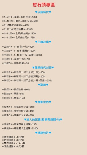 熱門關卡的價格都在圖片上
