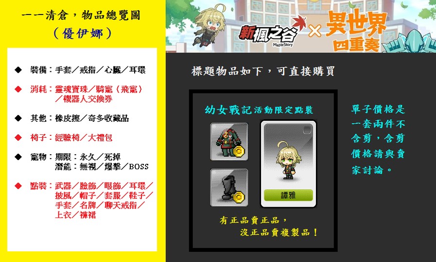 【提問開單】一一清倉◆幼女戰記✅譚雅的套服+譚雅鞋子✅一套兩件◆不含剪◆售風鈴鑽石幸運草耳環