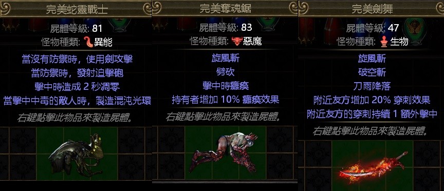 屍體幽魂PoE異能、惡魔、生物👌完美蛇靈戰士、完美奪魂鋸、完美劍舞