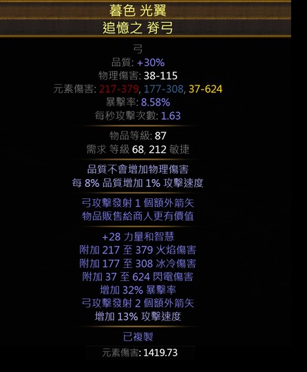 多把複製元素弓DPS1419+ +3投射物攻速暴擊率龍捲射擊閃電箭矢元素打擊光譜