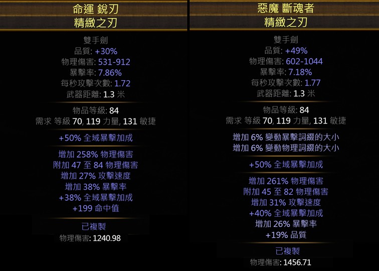 2把複製雙手劍 高DPS物理雙手劍 攻速暴率暴擊加成