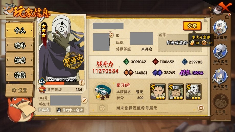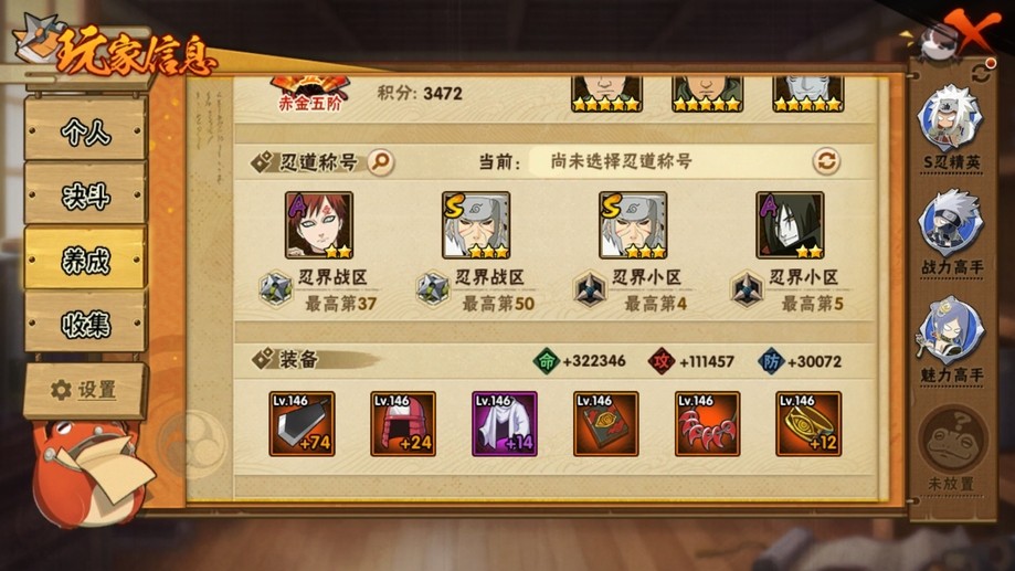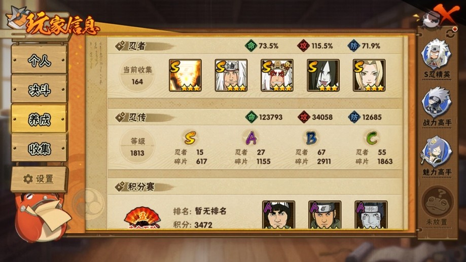 【99等】V6 15S忍 27A忍 164忍 617S碎片 16通靈 1000W戰力 前5