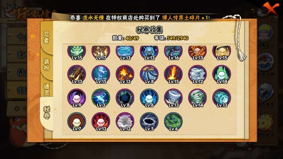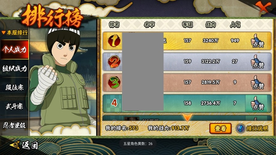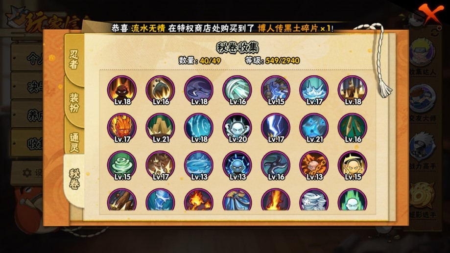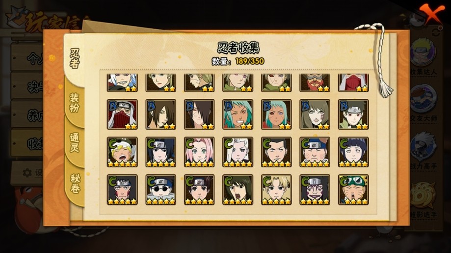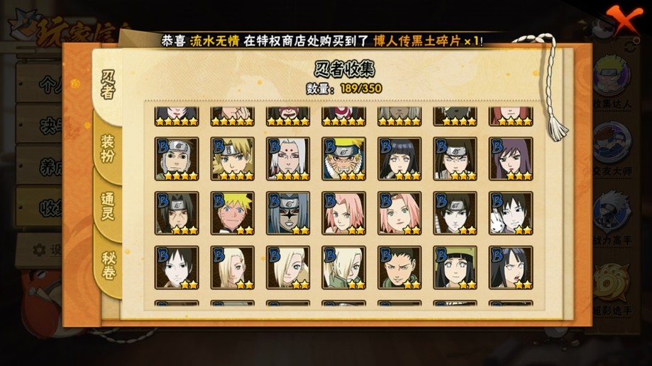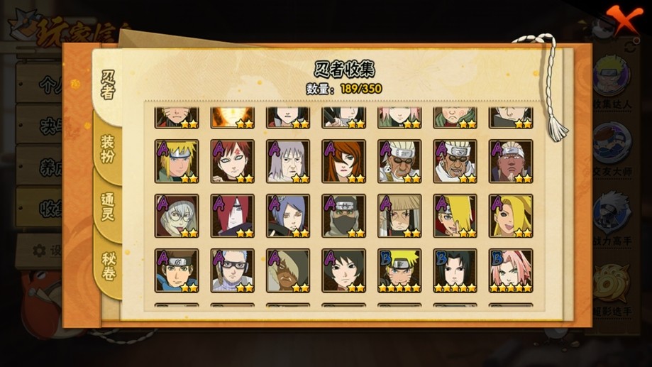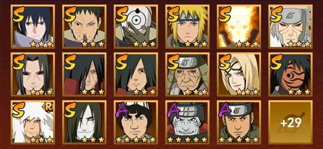 飛段,舞之豪傑自來也,穢土扉間,百豪櫻,阿斯瑪,鬼鮫,須佐佐助,蠍,斗篷兜,博人傳木葉丸,斑,忍戰奇拉比,青年長門,永恆萬花筒佐助,紅夜帶土,忍戰我愛羅,穢土斑,迪達拉,死司飛段,白面具,止水,青年艾,穢土日斬,五代水影,穢土迪達拉,小南,大蛇丸,奇拉比,六代水影,仙人鳴人,忍戰帶土,鼬,萬花筒佐助,忍戰丁次,青年水門,凱,地怨虞角都,九尾鳴人,九喇嘛鳴人,博人傳黑土,水門,博人傳達魯伊,疾風傳我愛羅,百豪綱手,穢土鼬,近松十人衛千代