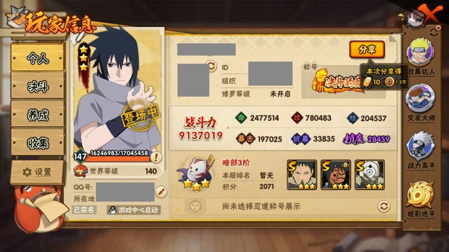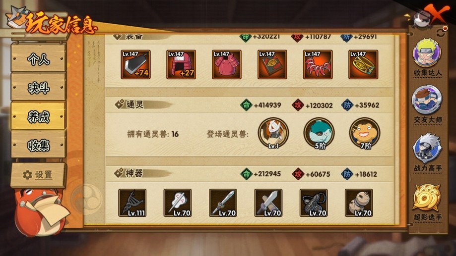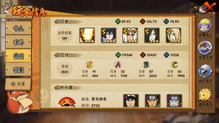 【99等】V7 14S忍 32A忍 189忍 464S碎片 16通靈 900W戰力 前10