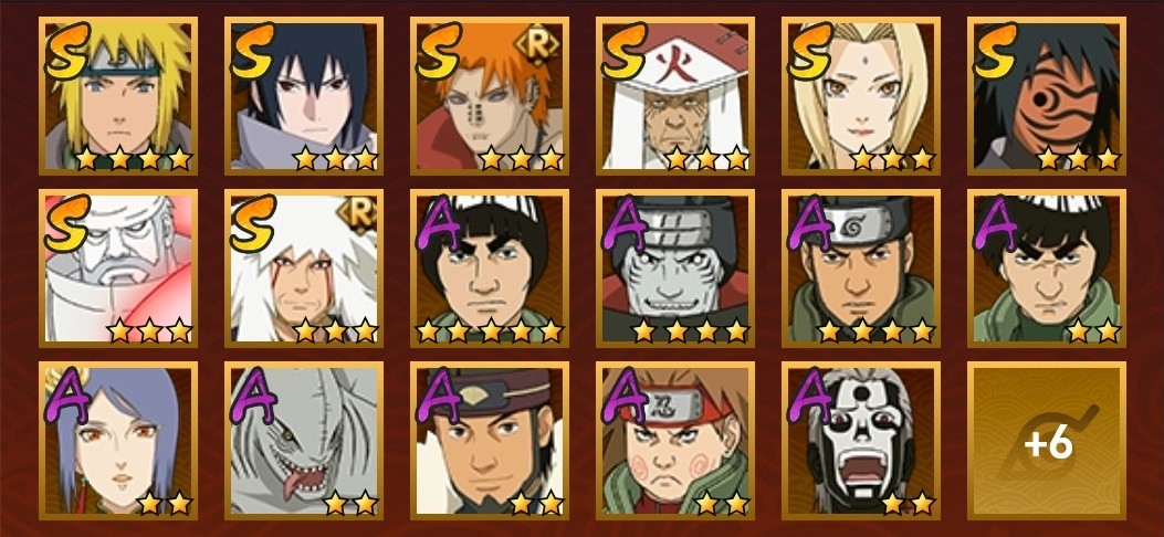 忍戰寧次,舞之豪傑自來也,鮫肌融合鬼鮫,七夕阿斯瑪,阿斯瑪,鬼鮫,鼬,金式,忍戰丁次,蠍,三代火影,凱,永恆萬花筒佐助,綱手,忍戰凱,水門,新春小南,紅夜帶土,迪達拉,百機蠍,天道超,疾風傳我愛羅,死司飛段
