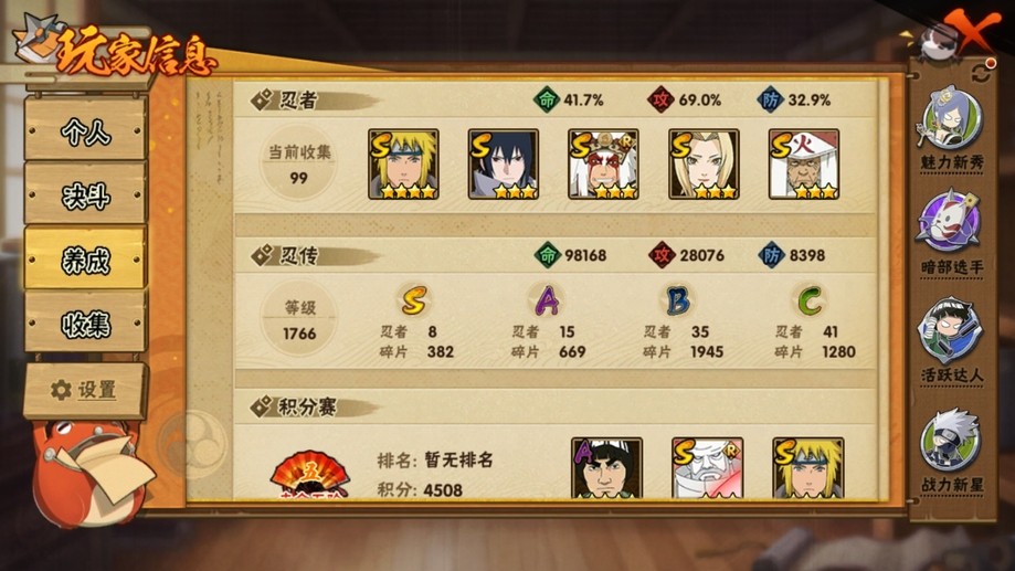 【99等】V13 8S忍 15A忍 99忍 382S碎片 18通靈 700W戰力 前50名