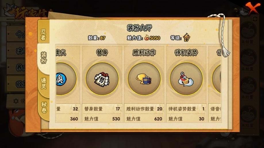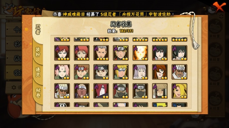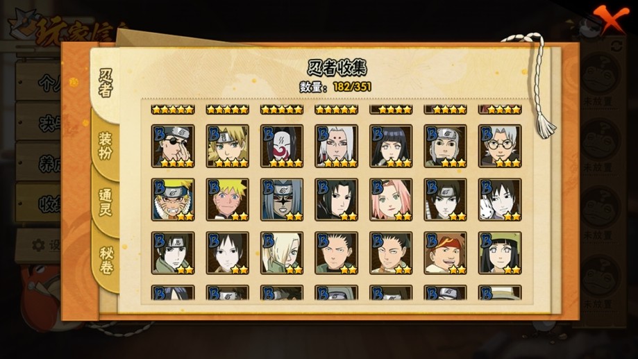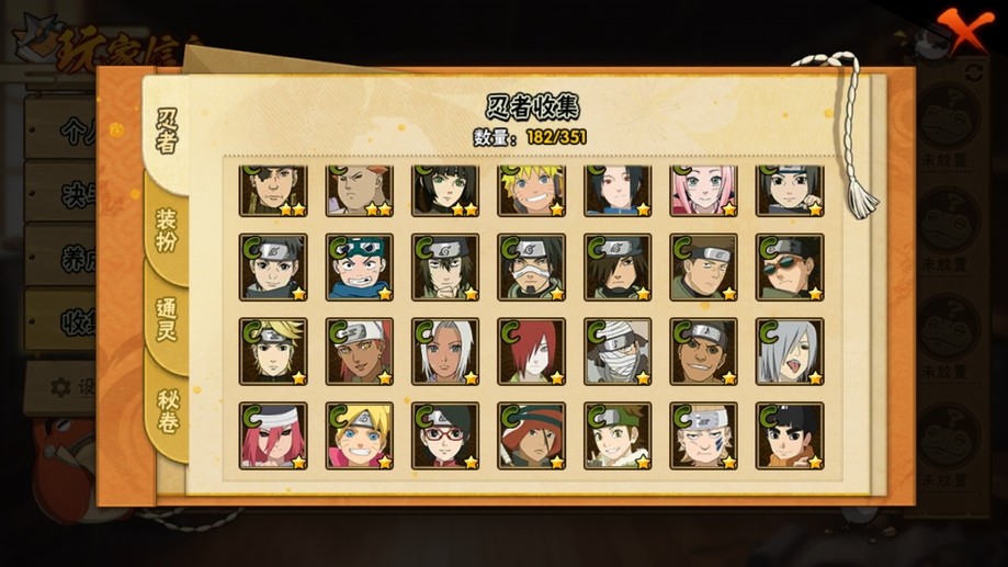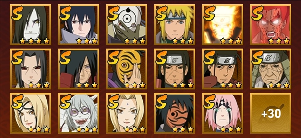 飛段,舞之豪傑自來也,仙人兜,百豪櫻,阿斯瑪,鬼鮫,須佐佐助,蠍,博人傳木葉丸,忍戰奇拉比,青年長門,永恆萬花筒佐助,忍戰櫻,綱手,紅夜帶土,穢土斑,白面具,死司飛段,止水,青年艾,五代水影,穢土日斬,穢土迪達拉,神秘面具男,大蛇丸,死門凱,奇拉比,仙人鳴人,六代水影,萬花筒佐助,鼬,忍戰丁次,穢土柱間,柱間,青年水門,凱,地怨虞角都,九尾鳴人,九喇嘛鳴人,博人傳黑土,水門,角都,博人傳達魯伊,疾風傳我愛羅,百豪綱手,近松十人衛千代,穢土鼬