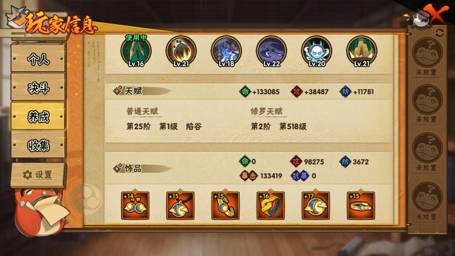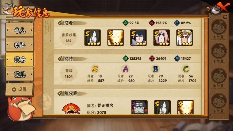 198忍法帖已開點卷還有810金幣7000多天道超差15片