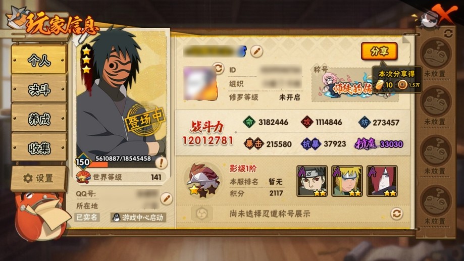 火影忍者> QQ客戶端> 395區> QQ帳號