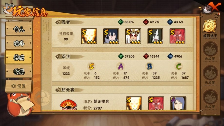 【99等】V6 6S忍 17A忍 99忍 152S碎片 13通靈 600W戰力 前500名