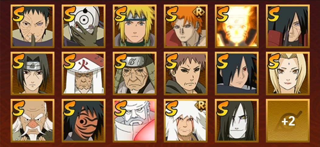 穢土日斬,創立斑,舞之豪傑自來也,大蛇丸,百豪櫻,萬花筒佐助,忍戰帶土,金式,三代火影,忍戰大野木,須佐鼬,綱手,九喇嘛鳴人,水門,紅夜帶土,穢土斑,天道超,白面具,四代風影