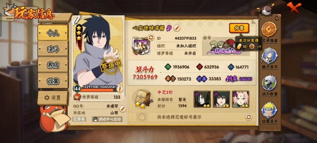 火影忍者> QQ客戶端> 364區> QQ帳號-擔保