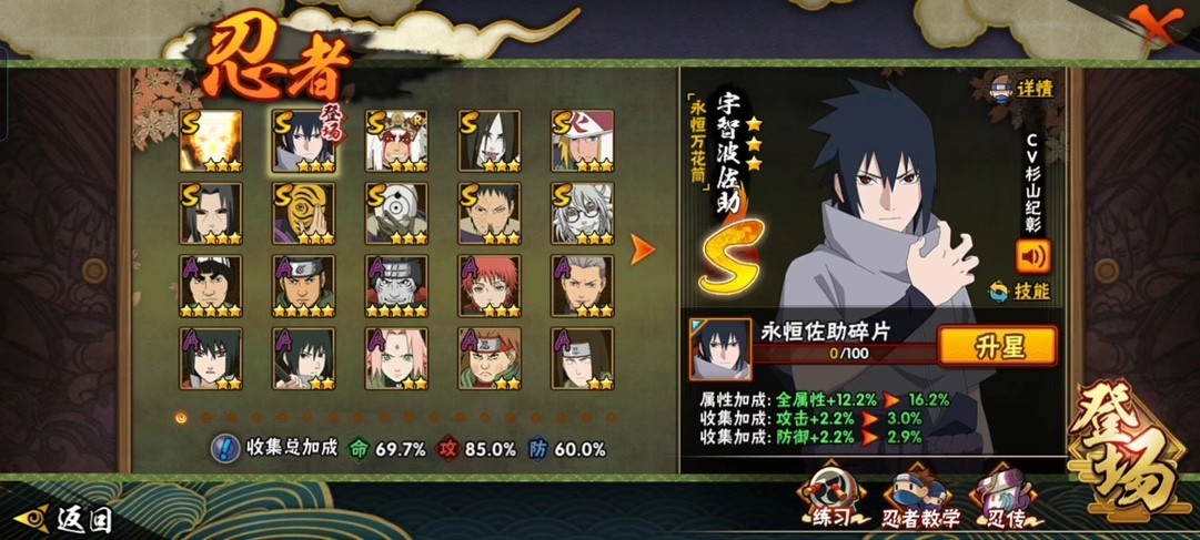 迪達拉,猿飛阿斯瑪,達魯伊·博人傳,艾·青年,邁特凱,蠍,幹柿鬼鮫,飛段,飛段·死司憑血,奇拉比,宇智波鼬,宇智波佐助·萬花筒寫輪眼,我愛羅·疾風傳,我愛羅·忍界大戰,照美冥·五代目水影,秋道丁次·忍界大戰,奇拉比·忍界大戰,忍戰寧次