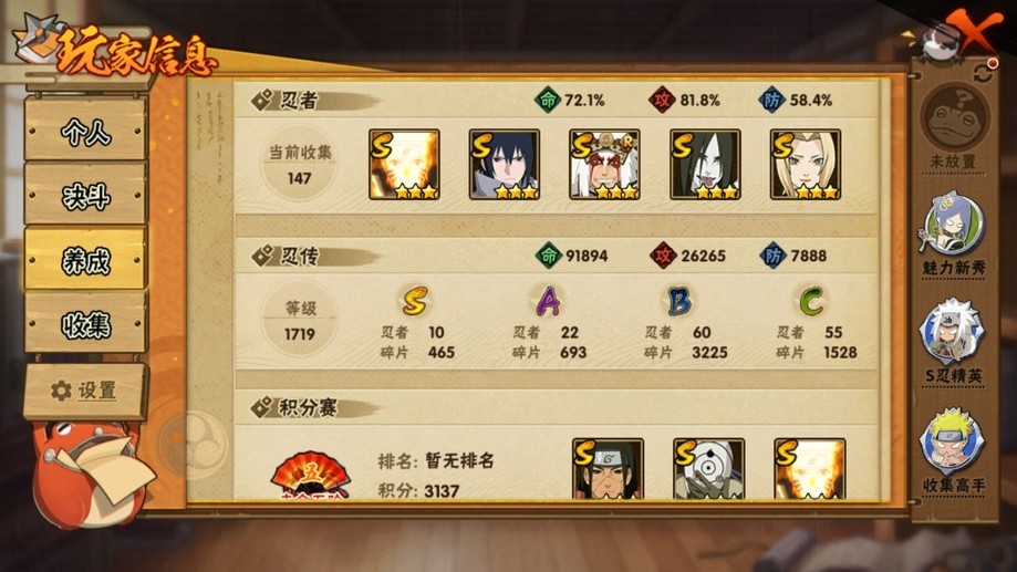 【99等】V6 10S忍 22A忍 147忍 465S碎片 16通靈 700W戰力 前50