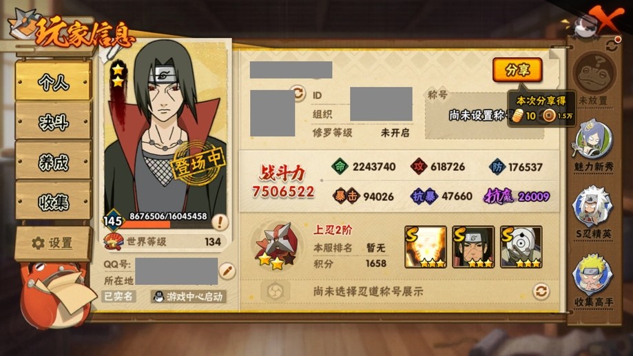 火影忍者> QQ客戶端> 1456區> QQ帳號