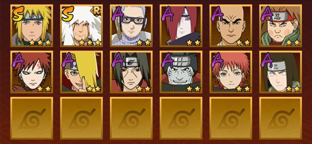 忍戰寧次,青年長門,舞之豪傑自來也,水門,六代水影,迪達拉,疾風傳我愛羅,鼬,鬼鮫,忍戰丁次,地陸,蠍