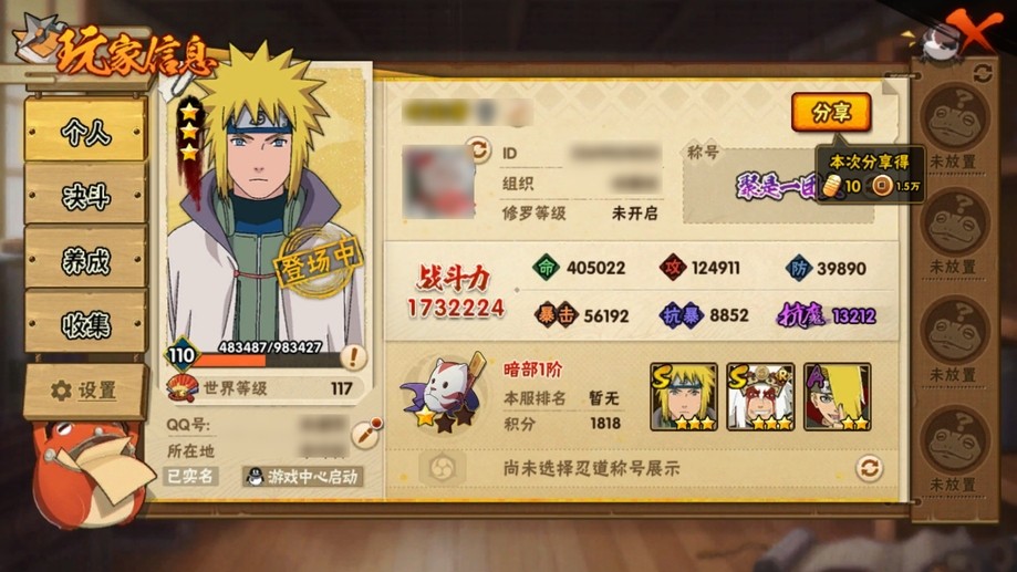 【99等】V4 2S忍 2A忍 33忍 58S碎片 8通靈 100W戰力 暗部