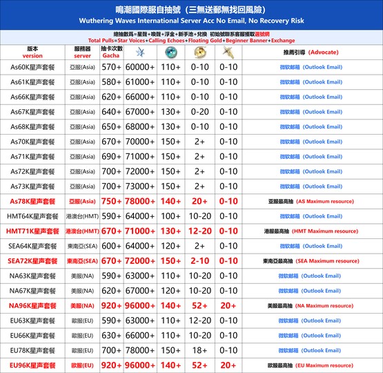 全 8591 首家 鳴潮國際服初始號自抽號亞服自選石頭號歐美服國服官卡卡羅吟霖鑑心維裡奈限定專武莫特斐白芷港台東南亞組合