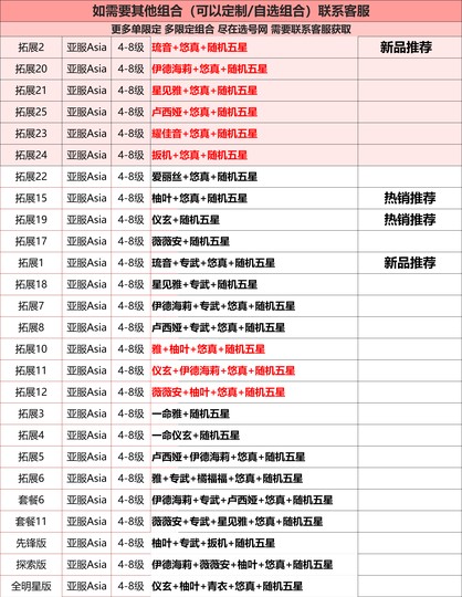 全 8591 首家 絕區零國際服初始亞服港台服自選組合開局艾蓮麗娜狼哥萊卡恩蕾坦初始自抽石頭號