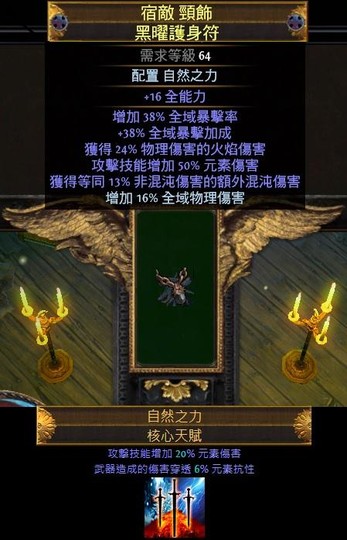 複製PoE魔鏡子👍宿敵護身符(物理附加火焰+攻擊元素《 雙 》轉額外非混沌傷害