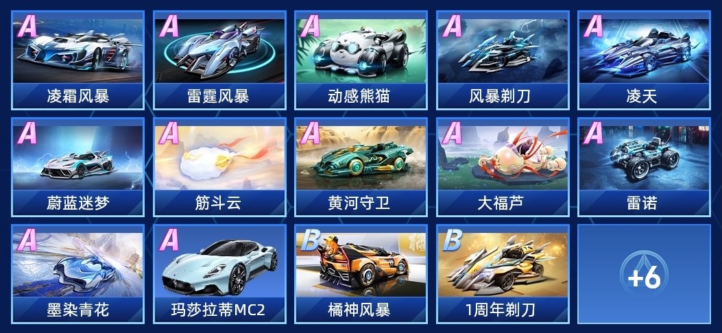 橘神風暴,凌霜風暴,1週年剃刀,雷霆風暴,動感熊貓,風暴剃刀,國潮限定·大黃蜂,雷諾,凌天,蔚藍迷夢,川麻高手,筋斗雲,小鵬P7·雲岫,黃河守衛,遊遊福鯉,全新十速,暴龍獸之力,大福蘆,瑪莎拉蒂MC20,墨染青花