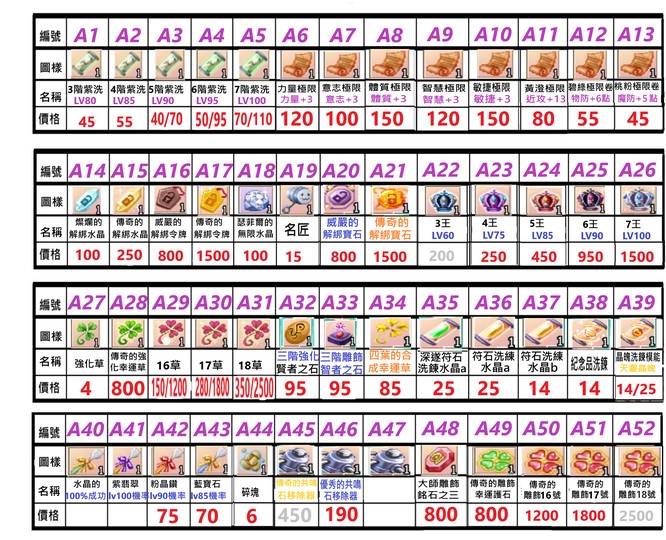 紋章-英雄鬥氣$500 戰魂卡-加斯洛$250 神石-守護旗幟$2500