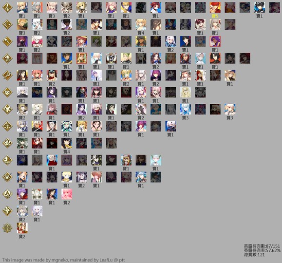 5星常用禮裝: 黑杯*11 寶石翁*12 2030*6 宇宙稜鏡*12 魔道元帥*2