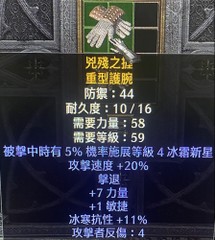 手工手套/擊退手套(20攻速/力/敏/冰抗)