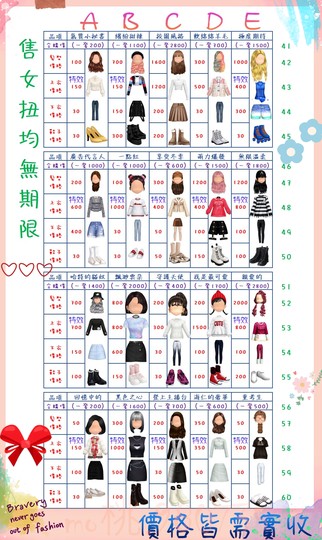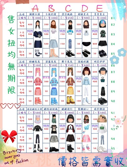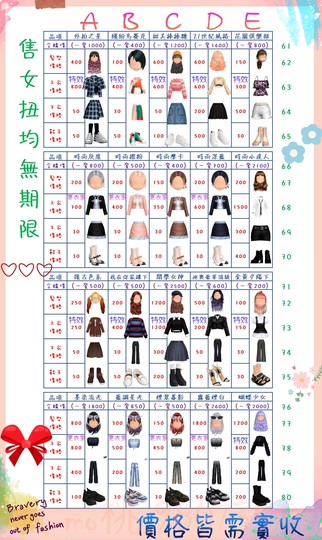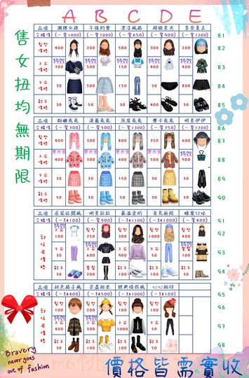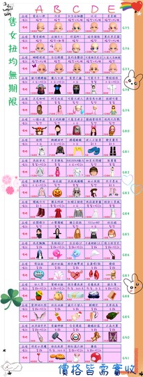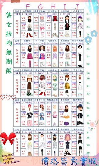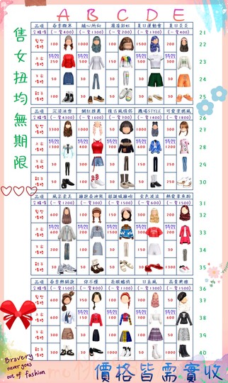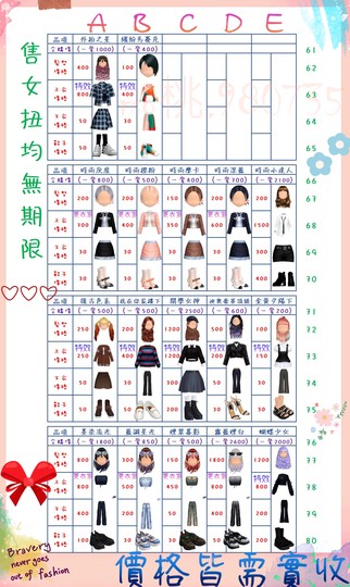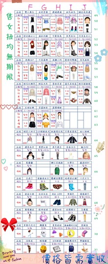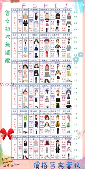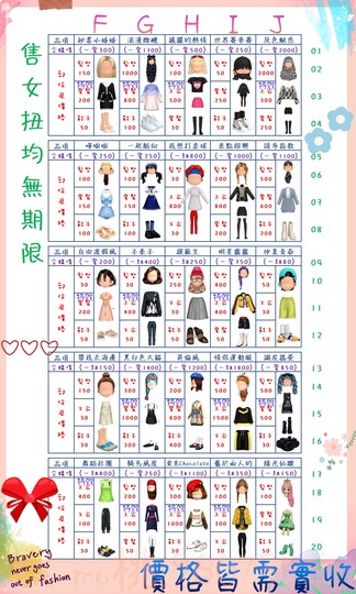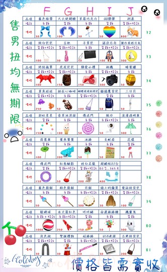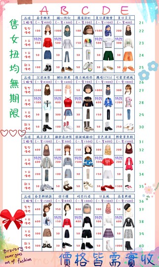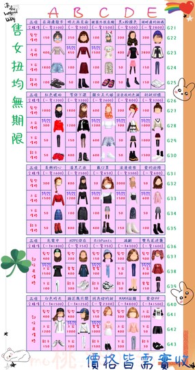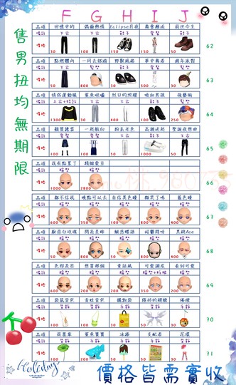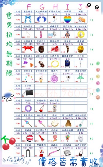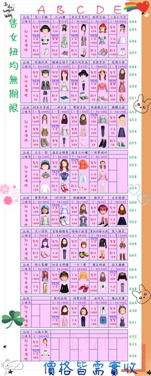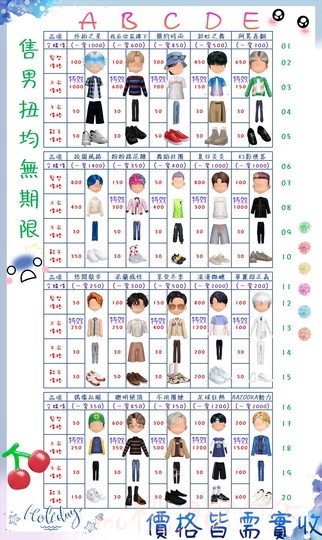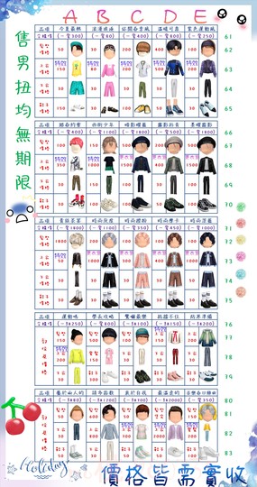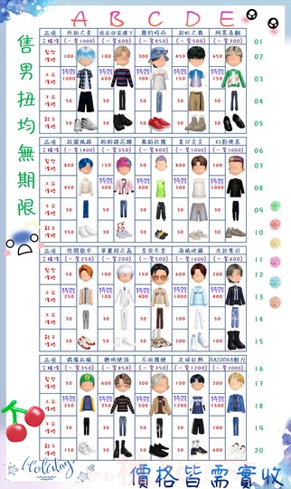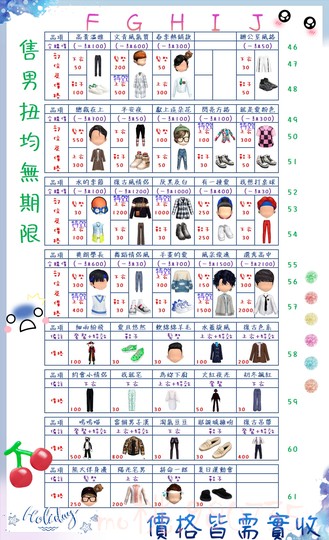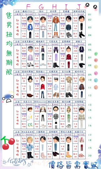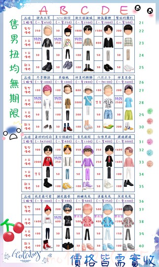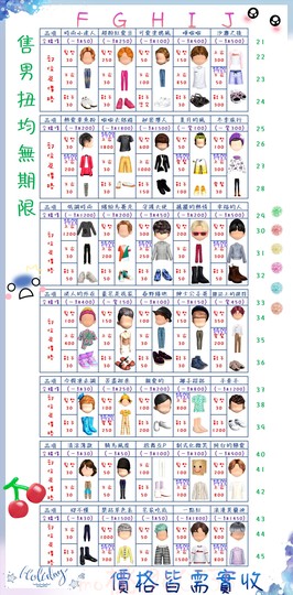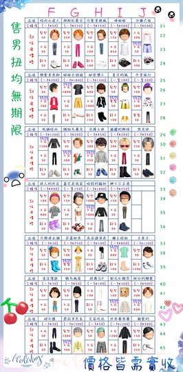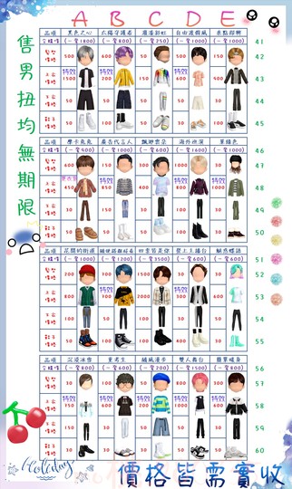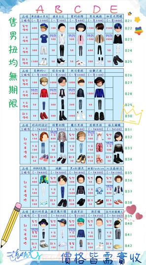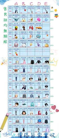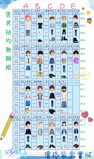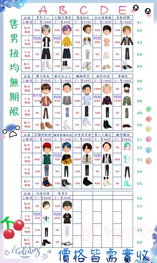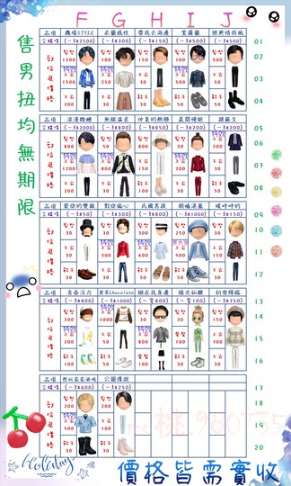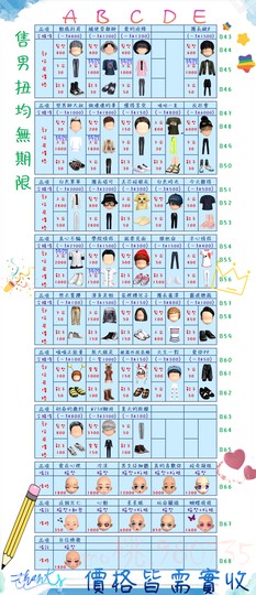價格都是需要實收,另請先告知男生還女生的在附上編號!