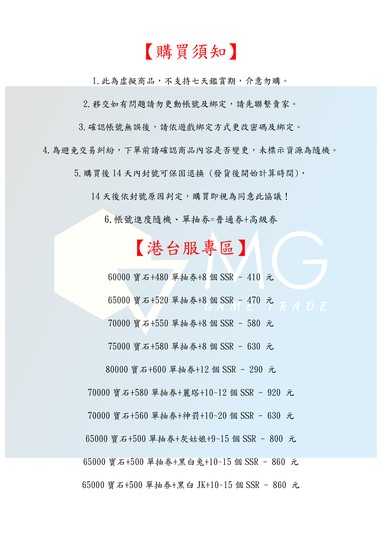 【初始號】【MG數碼】 台服 日服 韓服 國際服 多石號 自抽號 初始號 自選號 自選組合