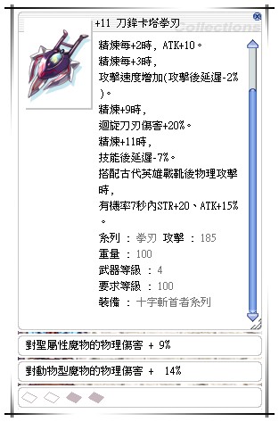 +11 刀鋒拳刃(無卡.聖屬.動物怪增傷)= 200T