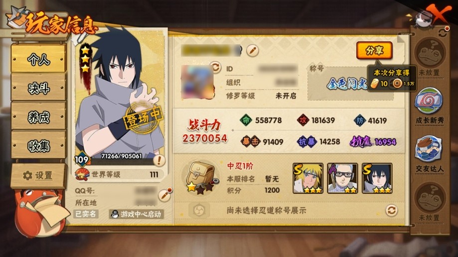 火影忍者> QQ客戶端> 3451區> QQ帳號
