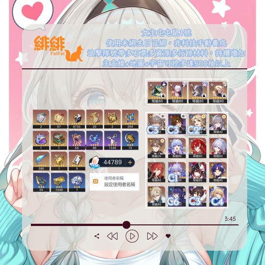 |若出問題號主會協助處理,皆有一手號主資料不用擔心可放心遊玩