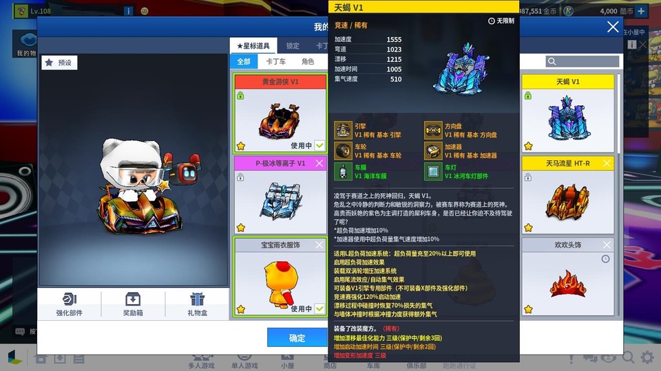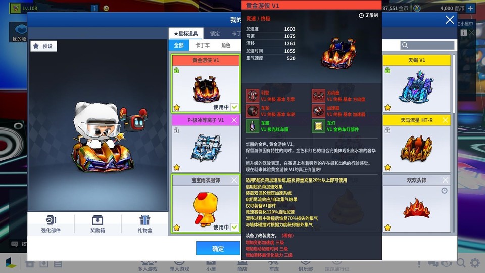 【MIU】跑跑卡丁車 黃金遊俠V1+阿緹密斯V1+天蠍V1頂改、兩套服飾、爆L幣