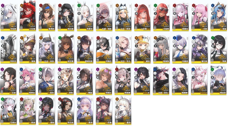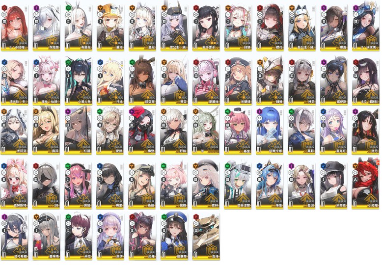 淺灰=超標準 淺藍=朝聖者 淺橘=限定角 淺綠=聯動角