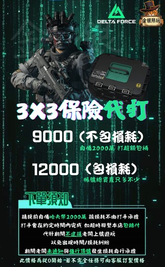 3x3代解目前價格9000t不包損耗 12000包損耗(從頭到尾) 保證綠玩 封號包賠