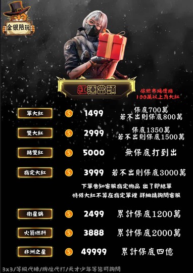 單大紅 1499t (保底700萬 若不出則保底800萬)