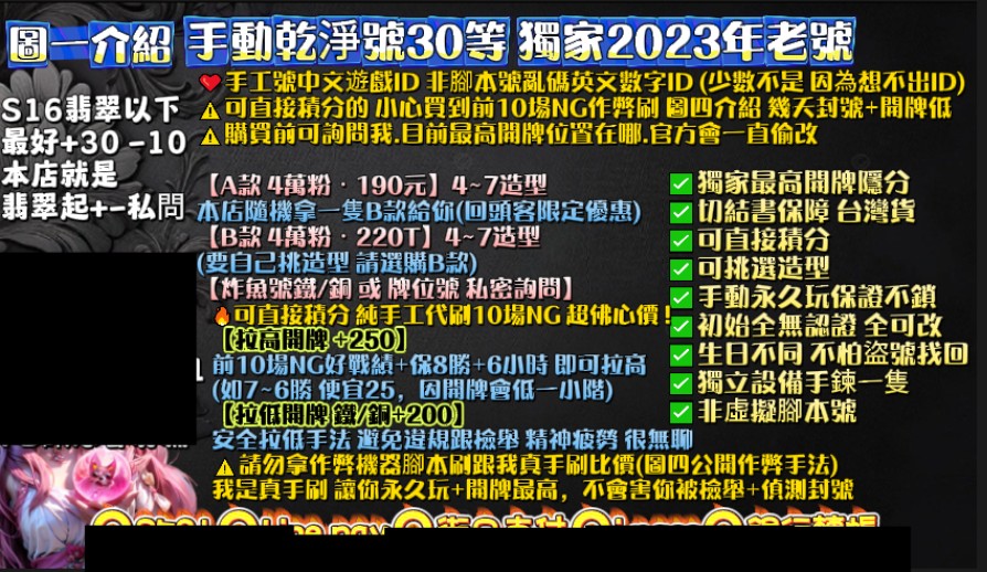 | 真手工代刷 10場NG好KDA+保8勝+6小時=拉高開牌隱分 |