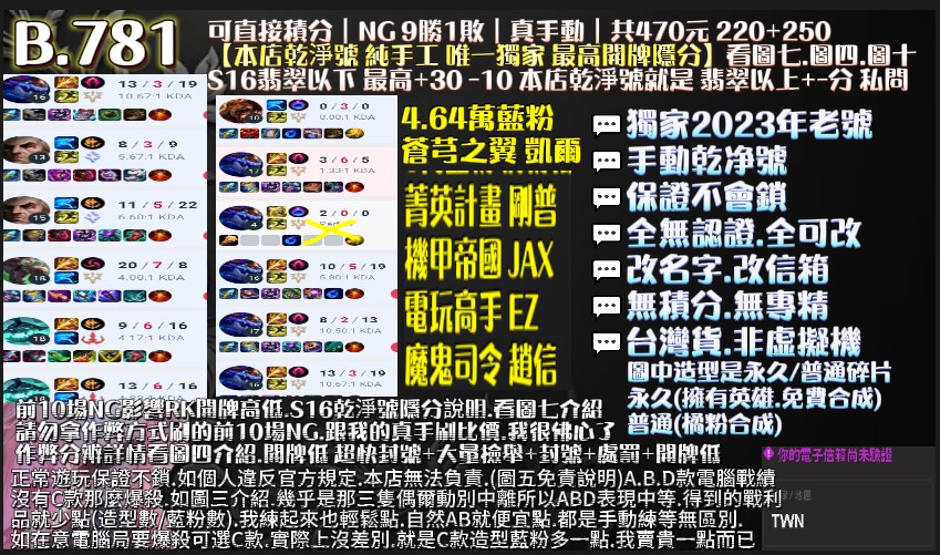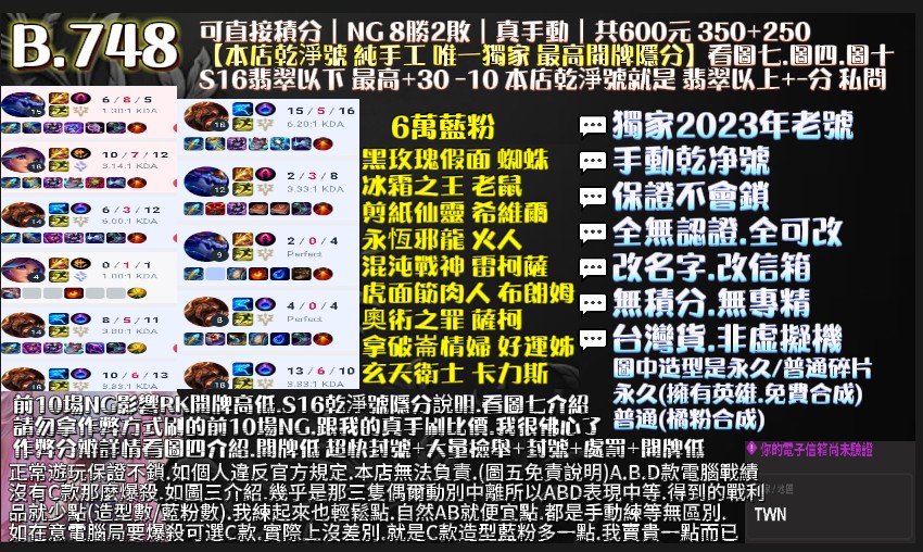 👉10場NG 好KDA+保8勝+工時6H,有現貨,也可指定帳號代刷