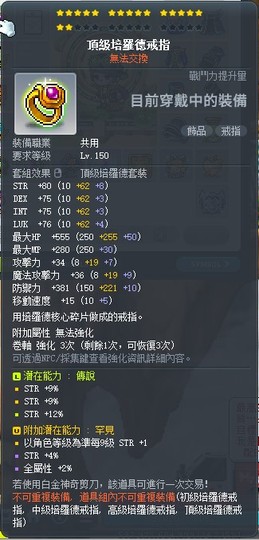 【頂級培羅德戒指】頂級培羅德戒指頂戒30趴力STR附加罕見附加+1+4%+2%力大雙小雙