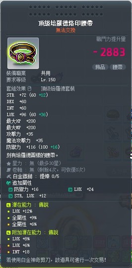 【頂級培羅德烙印腰帶】頂培腰/頂腰/附加傳說附加/27%幸帶15%全/附加8+6幸LUK/附加傳說雙排