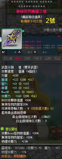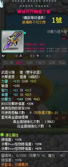 【劍士(槍)神秘武器】神秘冥界幽靈之槍、傳說BOSS%攻擊、物攻%傷害、54攻星火、衝好靈魂寶珠