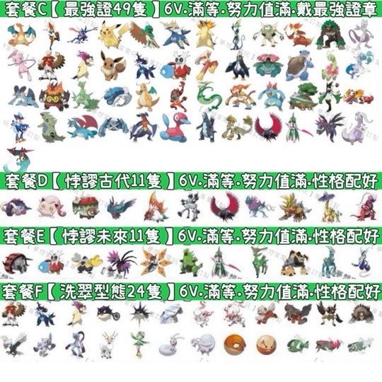 💎【套餐及全圖鑑參考圖片】都是6V.王冠鍛鍊滿.滿等.性格配好.努力值滿,官方目前有開放色違的都是色違,也可以選擇原色